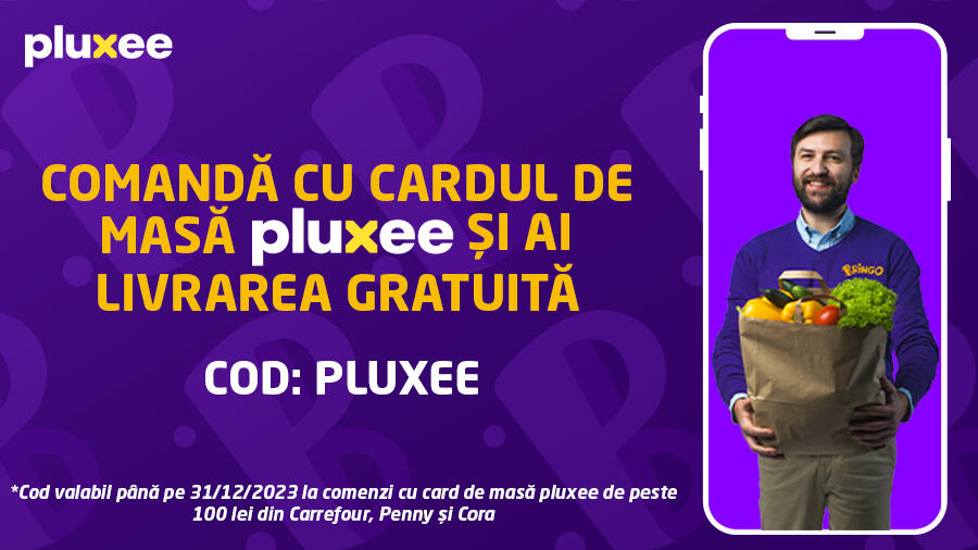 Participanții trebuie să adauge codul “PLUXEE” înainte de a plasa comanda, în secțiunea de Vouchere din aplicația Bringo.